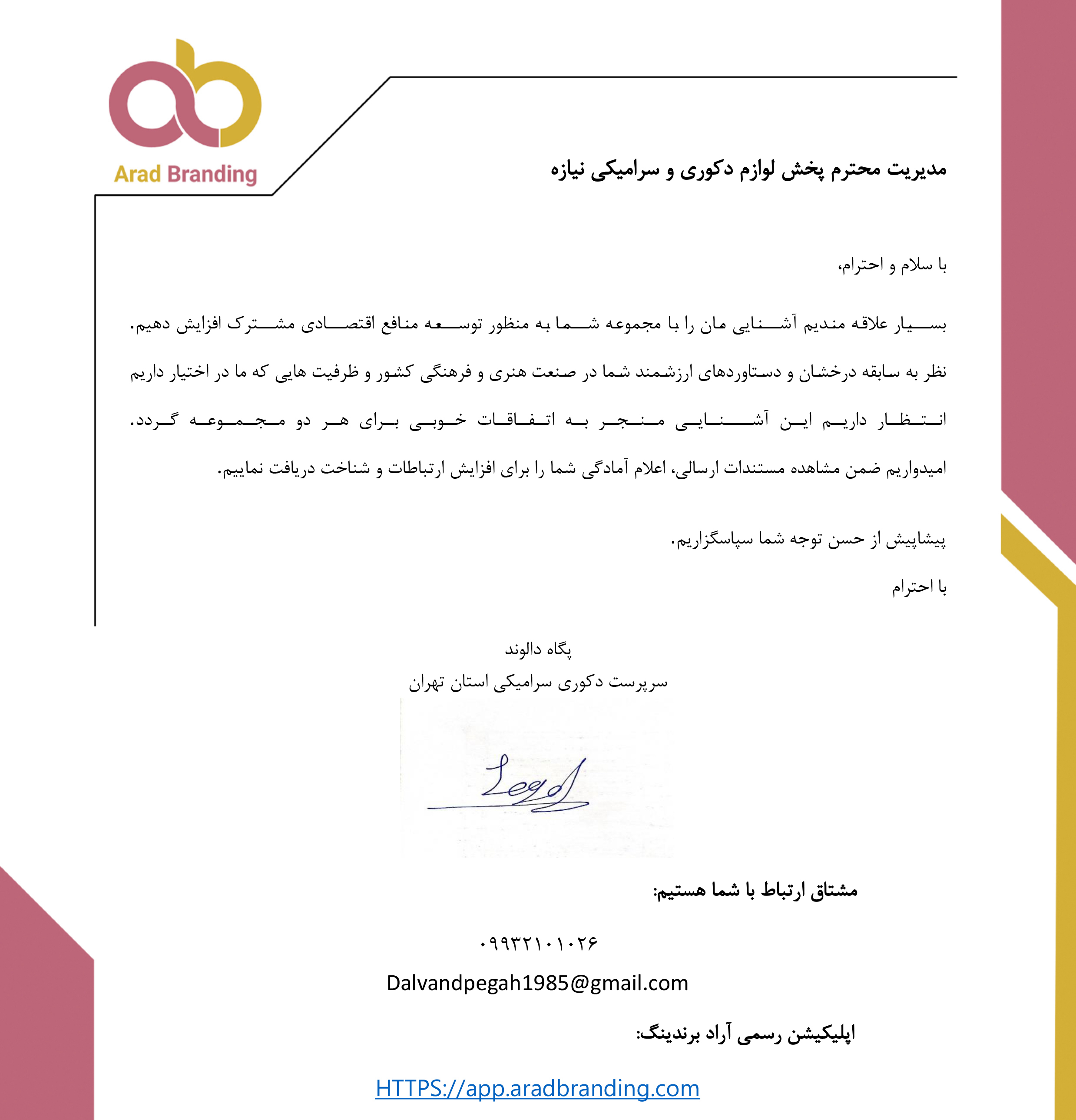 آراد برندینگ در نظر دارد فضایی برای گفتمان سازنده میان کارمندان و تاجران ایجاد کند تا همگی در مسیر تجارت قدرتمندتر شویم.